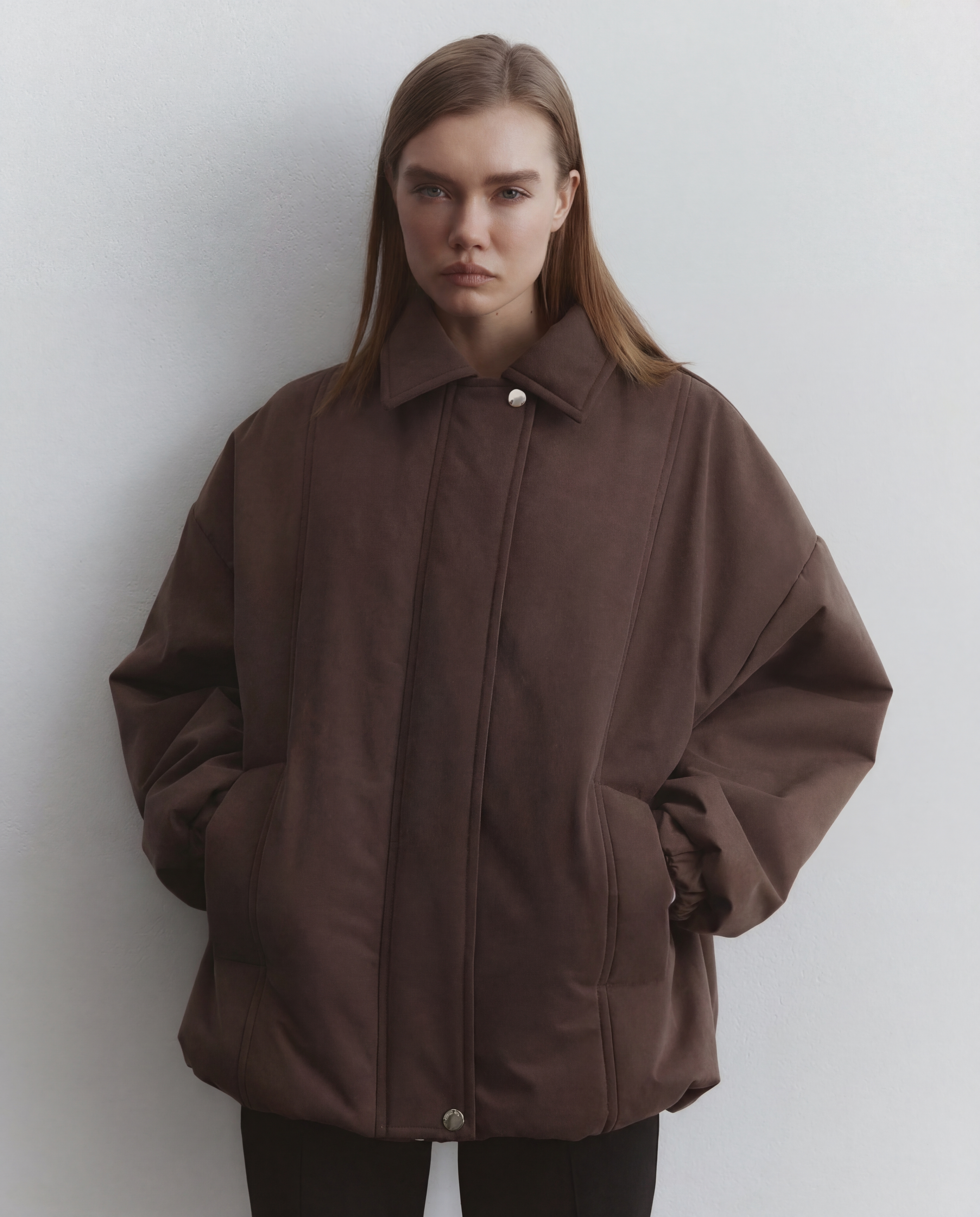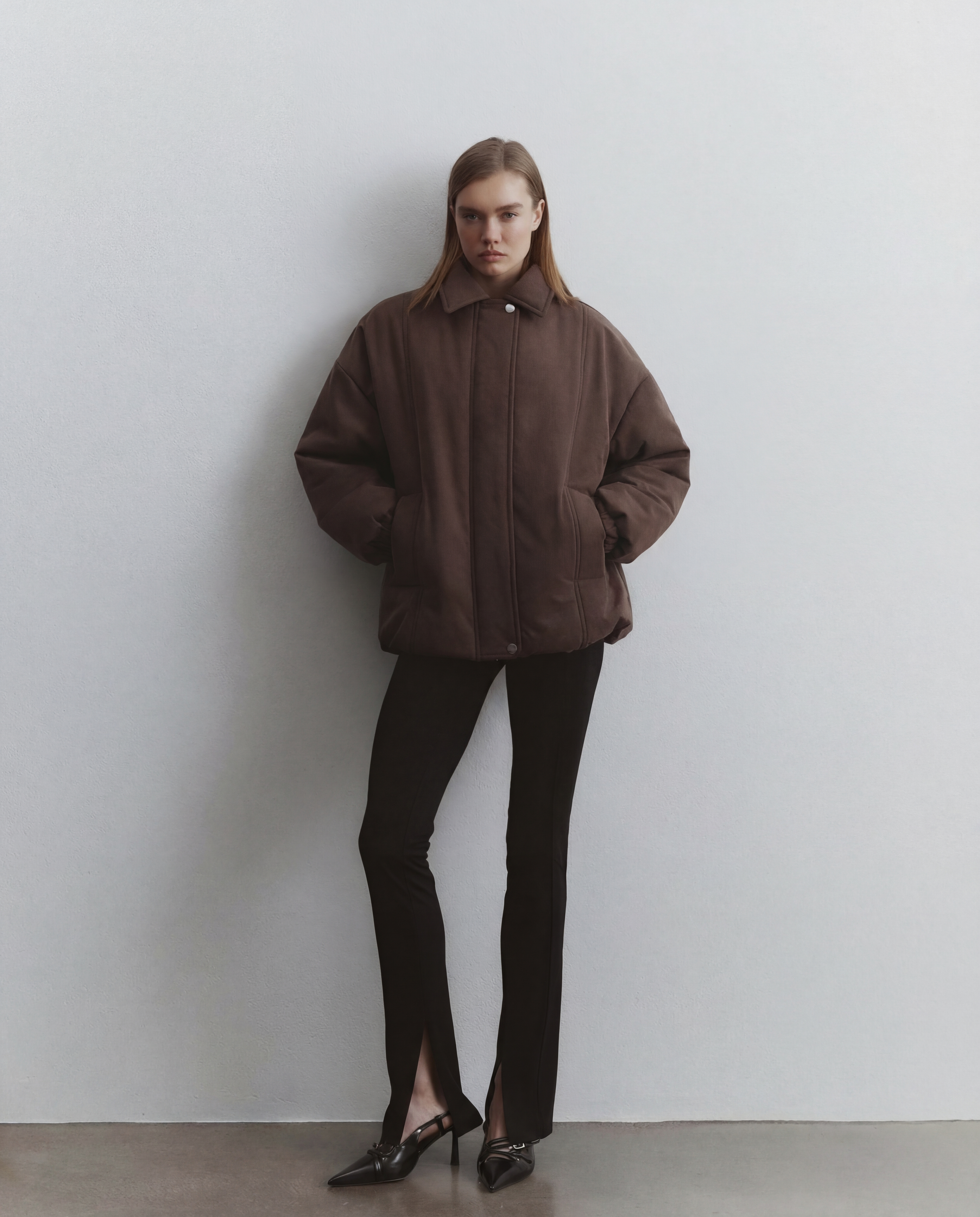 Бомбер с акцентными рукавами, цвет какао
