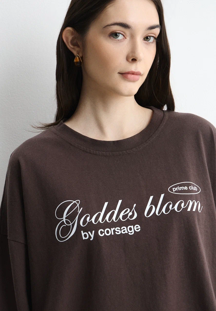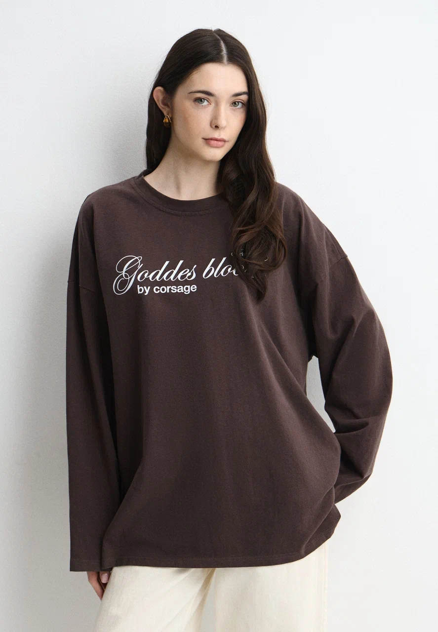 Лонгслив из органического хлопка свободного фасона выполнен с фирменным принтом Goddess bloom.